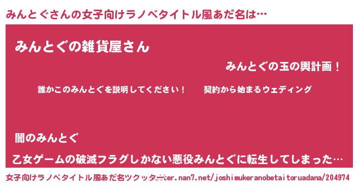 | 胡散臭い通販商品みたいなあだ名 | 『億万長者になれるブレスレット…その名も「みんとぐ」』 |