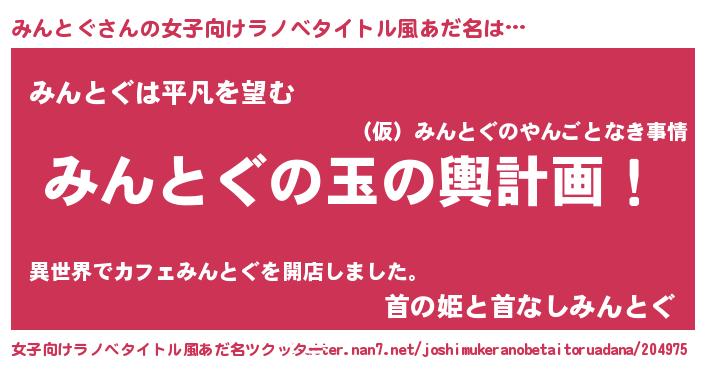 | 恥ずかしいあだ名 | 『ミンリンリン』『プリティーみんとぐ』 |