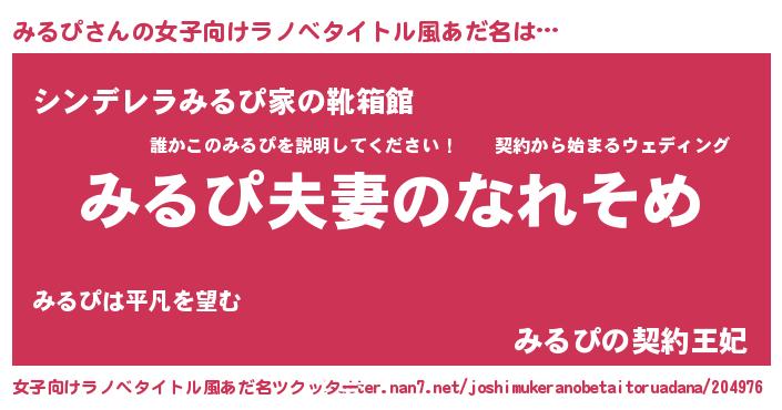 | 胡散臭い通販商品みたいなあだ名 | 『100人中100人が認めたマグネット磁石…その名も「みるぴ」』 |