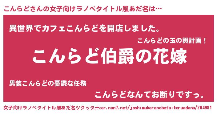 | ヘコむあだ名 | 『なまこ酢』『こんらど(笑)』 |