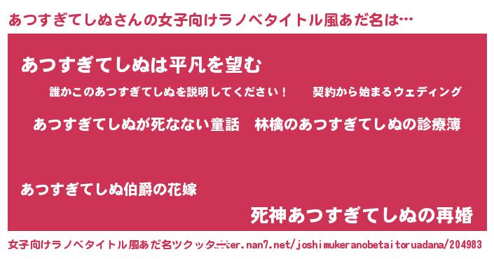 | 意味不明あだ名 | 『住所不定無職あつすぎてしぬ(98歳)』 |