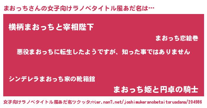 | 男性向けラノベタイトル風あだ名 | 『この素晴らしい世界にまおっちを!』 |