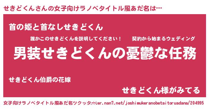 | 男性向けラノベタイトル風あだ名 | 『冴えないせきどくんの育てかた』 |
