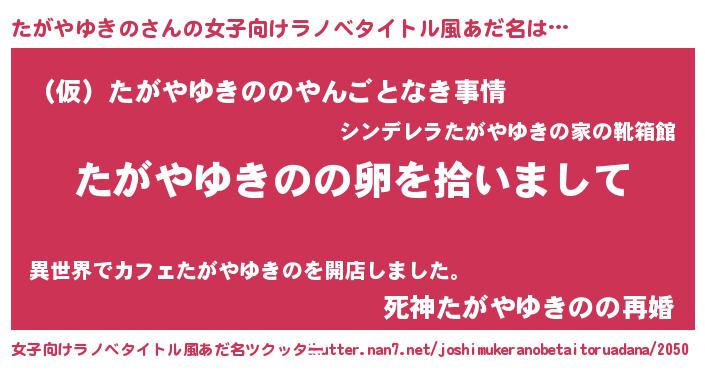 胡散臭い通販商品みたいなあだ名 | 『伝統あるペンダント…その名も「たがやゆきの」』 |