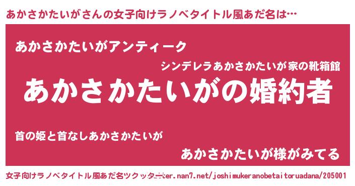 | 胡散臭い通販商品みたいなあだ名 | 『運命の人と巡り会える高級そうな壺…その名も「あかさかたいが」』 |