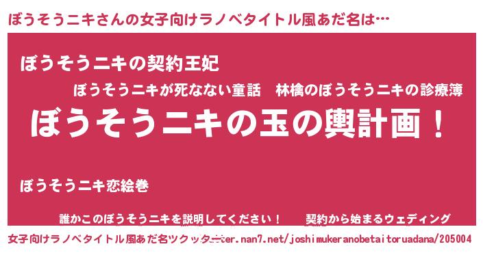 意味不明あだ名 | 『つくし科ぼうそうニキ属』 |