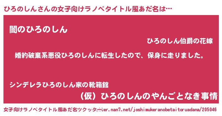 | 胡散臭い通販商品みたいなあだ名 | 『ガンによく効く高麗人参…その名も「ひろのしん」』 |