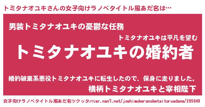 | ファンタジー風あだ名 | 『エターナルトミタナオユキー』 |