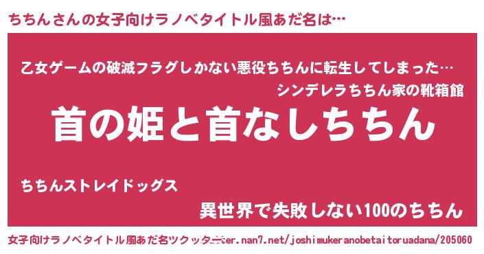 | 男性向けラノベタイトル風あだ名 | 『はたらくちちんさま!』 |