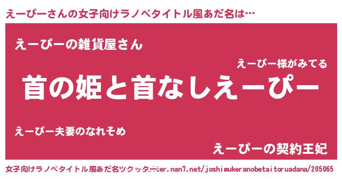 | 男性向けラノベタイトル風あだ名 | 『はたらくえーぴーさま!』 |