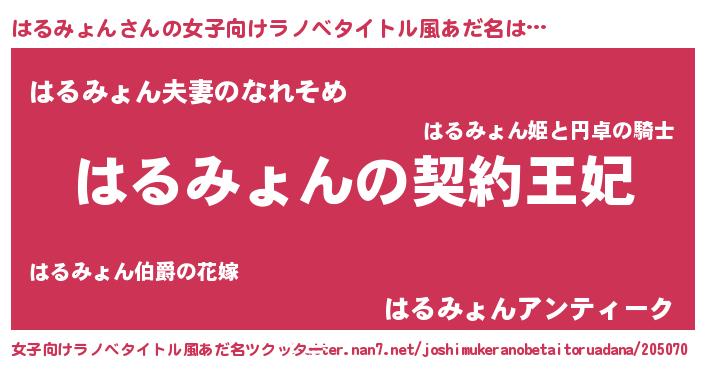 | 男性向けラノベタイトル風あだ名 | 『はるみょんという概念が存在しない退屈な世界 』 |