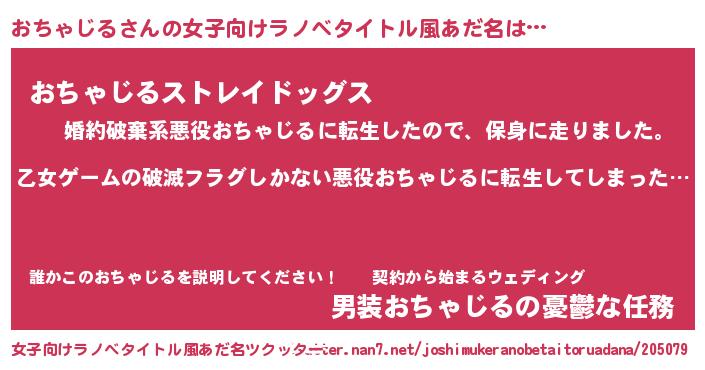 | 男性向けラノベタイトル風あだ名 | 『この素晴らしい世界におちゃじるを!』 |