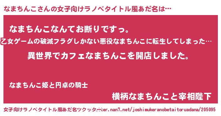 | 伝説のあだ名 | 『古文書に記された勇者なまちんこ』 |