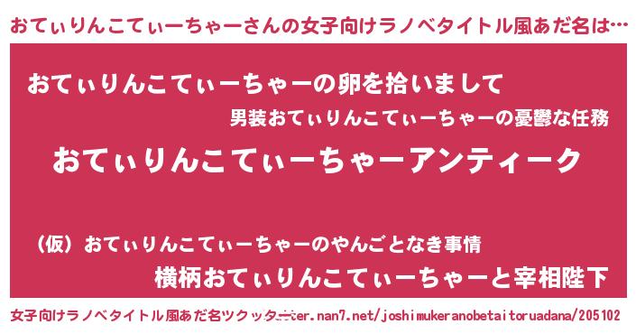 | 胡散臭い通販商品みたいなあだ名 | 『テレビで話題のアガリクス…その名も「おてぃりんこてぃーちゃー」』 |
