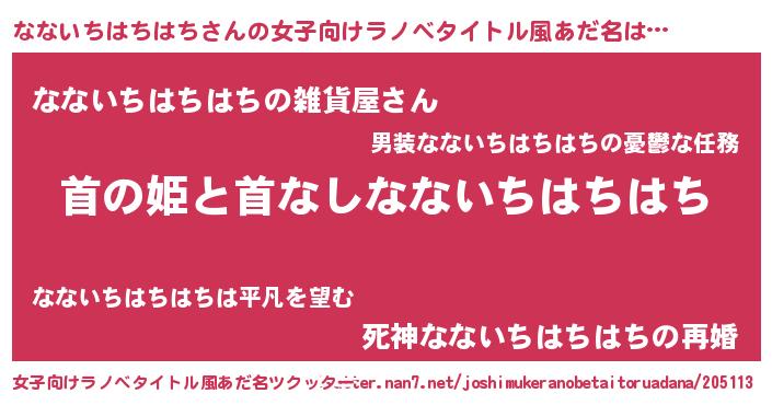 | 男性向けラノベタイトル風あだ名 | 『はたらくなないちはちはちさま!』 |