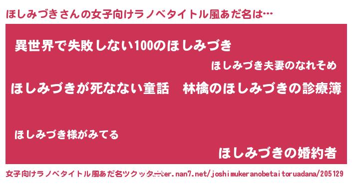 | 意味不明あだ名 | 『住所不定無職ほしみづき(12歳)』 |