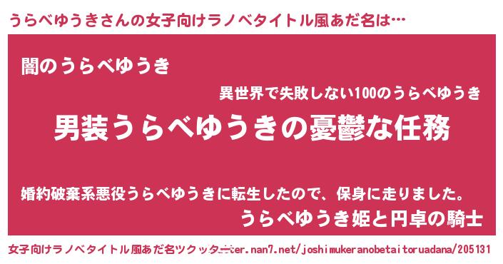 | 意味不明あだ名 | 『自称うらべゆうき』 |