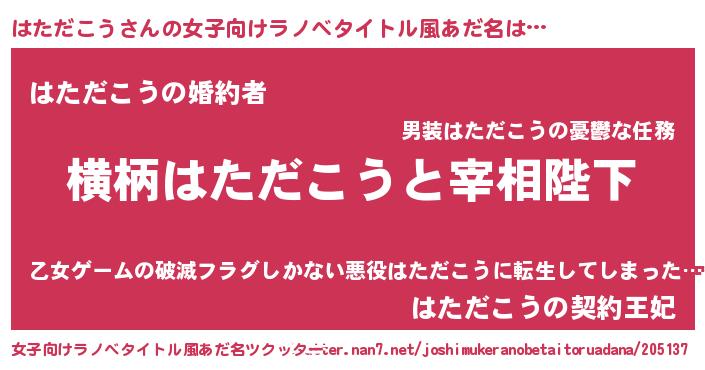 | 男性向けラノベタイトル風あだ名 | 『はただこうに滅ぼされるだけの簡単なお仕事です』 |