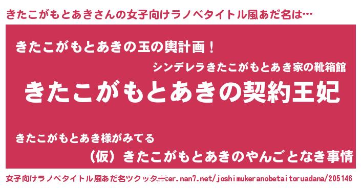 | 意味不明あだ名 | 『永久保存きたこがもとあき』 |