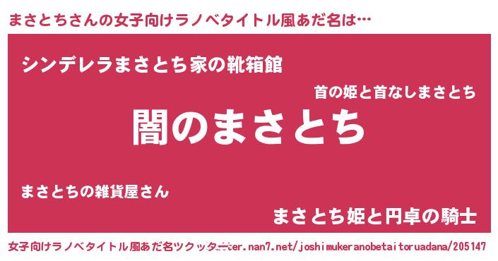 | 男性向けラノベタイトル風あだ名 | 『Re:まさとちから始める異世界生活』 |