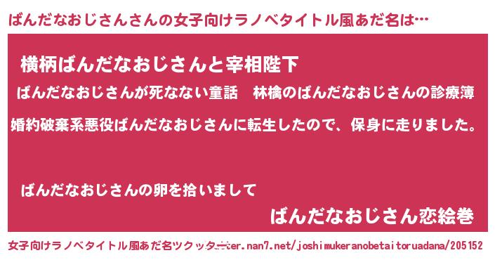 | 男性向けラノベタイトル風あだ名 | 『バンダナオジサンスレイヤー』 |