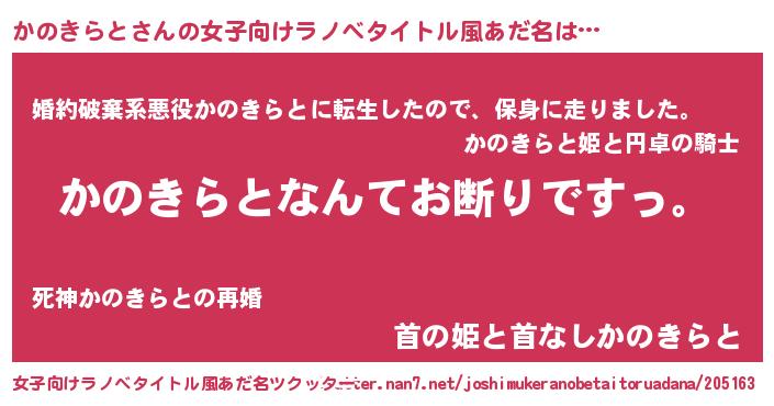 | 意味不明あだ名 | 『自称かのきらと』『ペロリンかのきらと』 |