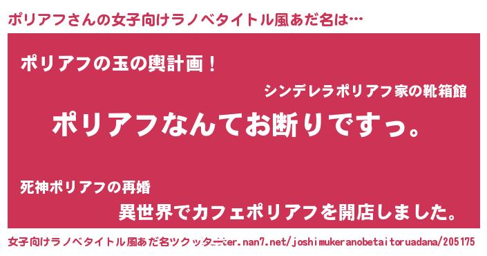 | 男性向けラノベタイトル風あだ名 | 『魔法科高校のポリアフ』 |