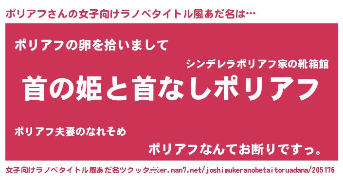 | 男性向けラノベタイトル風あだ名 | 『はたらくポリアフさま!』 |