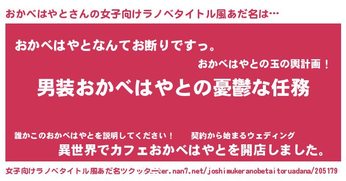 | 意味不明あだ名 | 『自称おかべはやと』 |