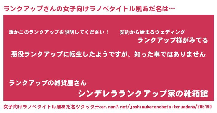 | 男性向けラノベタイトル風あだ名 | 『この素晴らしい世界にランクアップを!』 |