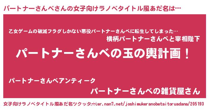 | 胡散臭い通販商品みたいなあだ名 | 『あなたにだけ特別に提供する100年もののヴィンテージワイン…その名も「パートナーさんべ」』 |