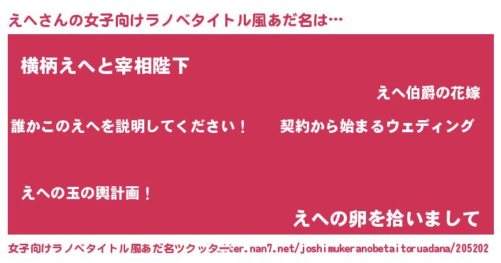 | 胡散臭い通販商品みたいなあだ名 | 『億万長者になれる水晶球…その名も「えへ」』 |