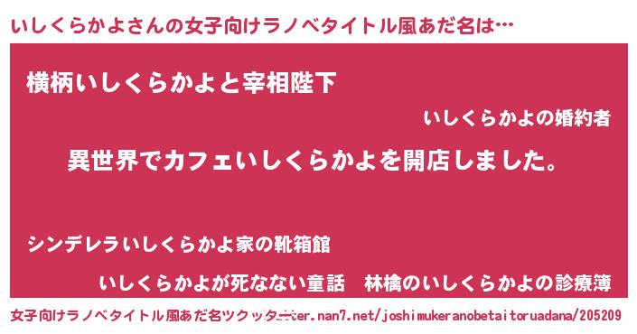 | 男性向けラノベタイトル風あだ名 | 『誰もが恐れるあのいしくらかよが、ぼくの専属メイドになるようです。』 |