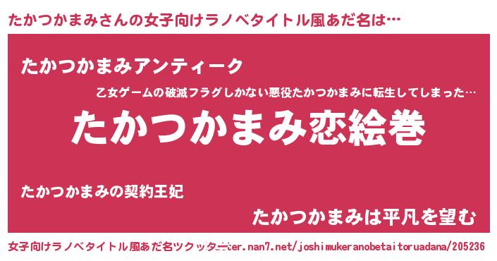 | 胡散臭い通販商品みたいなあだ名 | 『お金では代えられない隕石のかけら…その名も「たかつかまみ」』 |