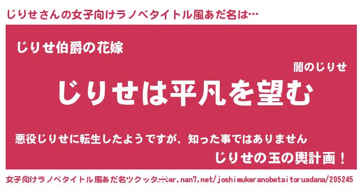 | 胡散臭い通販商品みたいなあだ名 | 『信頼と実績のペンダント…その名も「じりせ」』 |