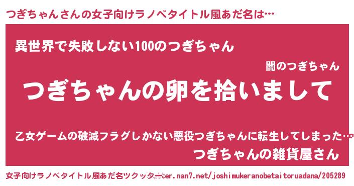 | ポケモン風あだ名 | 『ヒツギチャン』『ゼニツギ』 |