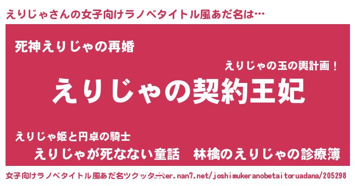 | 胡散臭い通販商品みたいなあだ名 | 『来世でも幸せになれる健康食品…その名も「えりじゃ」』 |