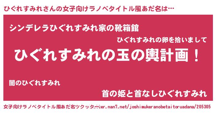 | 男性向けラノベタイトル風あだ名 | 『転生したらひぐれすみれだった件』 |