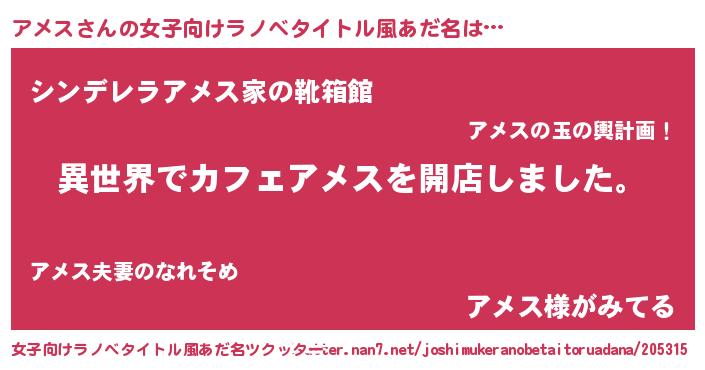| 男性向けラノベタイトル風あだ名 | 『誰もが恐れるあのアメスが、ぼくの専属メイドになるようです。』 |