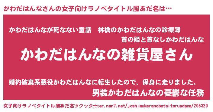 | 胡散臭い通販商品みたいなあだ名 | 『幸せが訪れる高級そうな絵画…その名も「かわだはんな」』 |