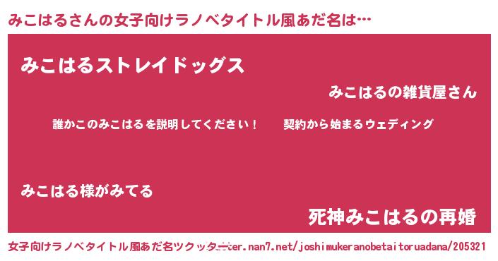 | 恥ずかしいあだ名 | 『プリティーみこはる』『みこっちょ』 |