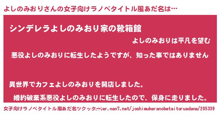 | 男性向けラノベタイトル風あだ名 | 『この素晴らしい世界によしのみおりを!』 |