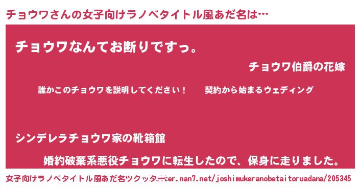 | 胡散臭い通販商品みたいなあだ名 | 『億万長者になれる水晶球…その名も「チョウワ」』 |