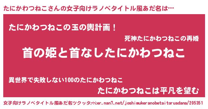 | 胡散臭い通販商品みたいなあだ名 | 『信頼と実績のネックレス…その名も「たにかわつねこ」』 |