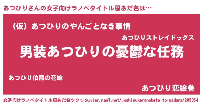 | ヘコむあだ名 | 『あつもー』『牛乳』『あつひり(笑)』 |