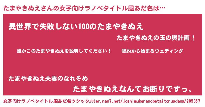 | 胡散臭い通販商品みたいなあだ名 | 『億万長者になれる水晶球…その名も「たまやきぬえ」』 |