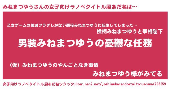 | 伝説のあだ名 | 『覚醒した魔法使いみねまつゆう』 |