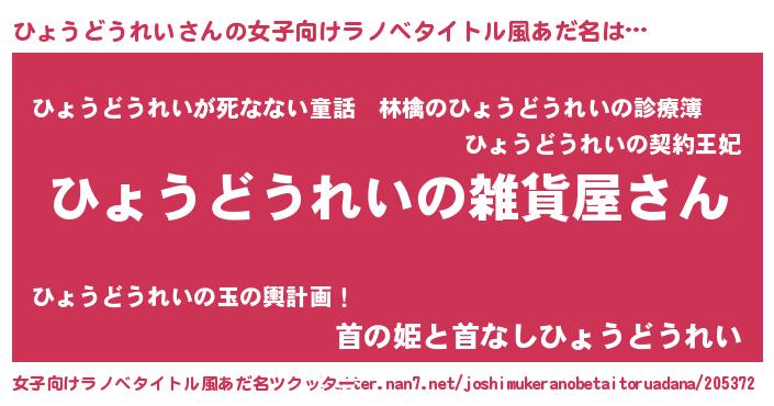 | 男性向けラノベタイトル風あだ名 | 『やはりひょうどうれいの青春ラブコメはまちがっている 』 |
