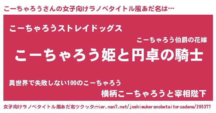 | 胡散臭い通販商品みたいなあだ名 | 『モテモテ間違いなし霊験あらたかなお札…その名も「こーちゃろう」』 |