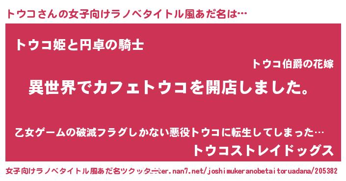 | 意味不明あだ名 | 『永久保存トウコ』『ペロリントウコ』 |